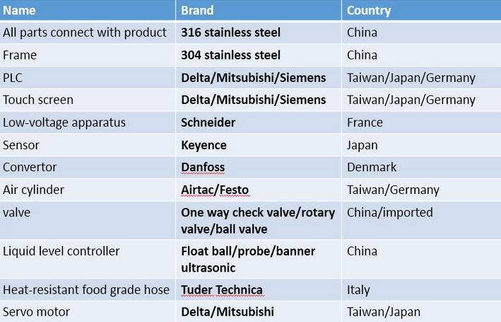 2. ജർമ്മനിയിൽ നിന്നുള്ള ഫെസ്റ്റോയുടെ ന്യൂമാറ്റിക് ഘടകങ്ങളും ജപ്പാനിൽ നിന്നുള്ള മിറ്റ്സുബിഷി ഇലക്ട്രിക് ഘടകങ്ങളും ഉപയോഗിച്ചാണ് ഇവ നിർമ്മിച്ചിരിക്കുന്നത്.